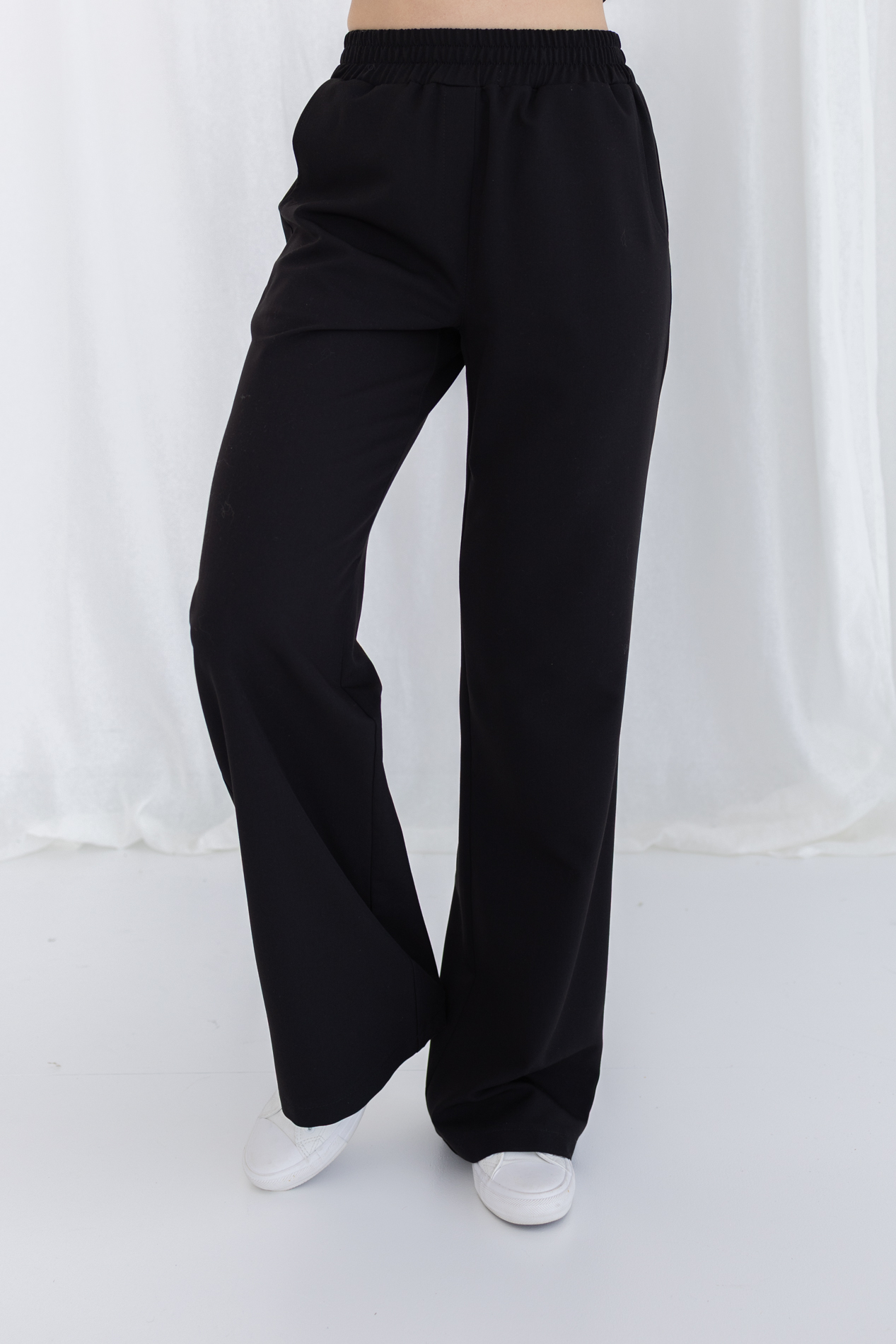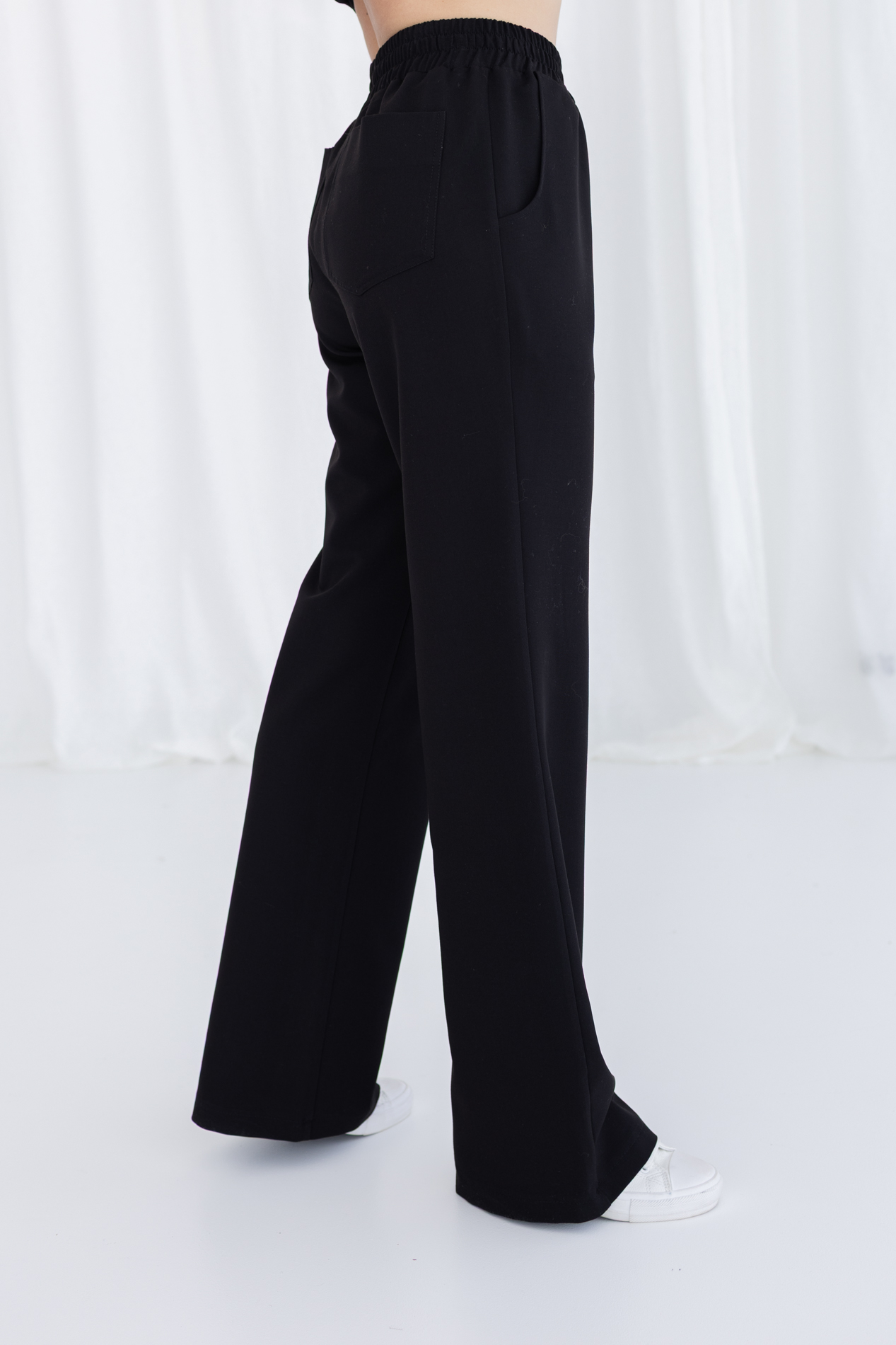Spodnie medyczne damskie SZEROKIE w kolorze czarnym. Luźne nogawki, dopasowany krój w talii i przewiewna tkanina zapewniają styl, wygodę i swobodę ruchu. Posiadają cztery kieszenie.